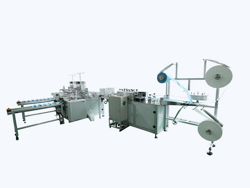 Automatic mask production line, also known as one to three mask production lines, composed of a mask body machine and three ear band composed of a welding machine. Every minute can output 120-150 piece of complete plane mask, mask specifications: 175*(80-100) mm three layers of non-woven planar filter type gauze mask. Compared with the single independent type mask making machine, joined the automatic conveyor belt and the connecting port, the unique design, in addition, to improve the production efficiency, reduce artificial cost, is in order to minimize the artificial participation, and reduce the risks of a mask is pollution in the production process.